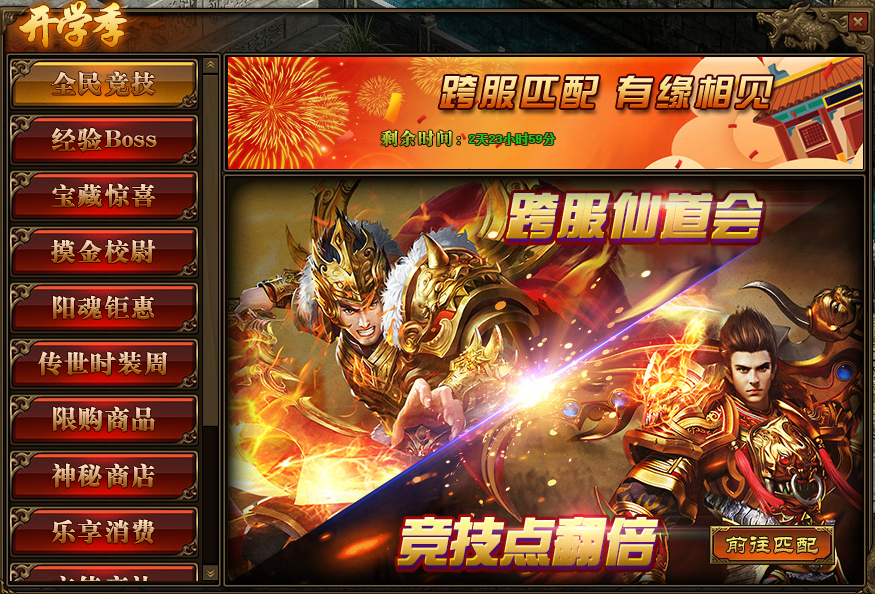1.活动期间,玩家参与跨服仙道会3V3或5V5匹配,获得“竞技点”翻倍;