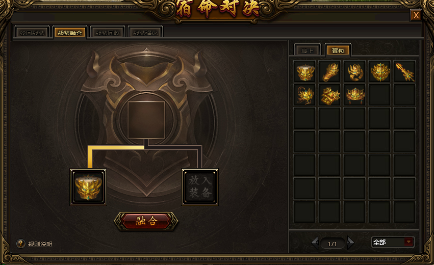 1.系统开启:开服90天,等级大于90级,转生等级大于10级,通过【宿命对决-轮回战装-战装融合】进入战装融合系统;