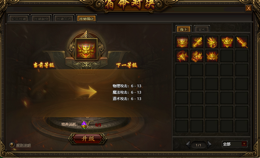 a.轮回战装共8个部位,每个部位仅能佩戴对应类型的装备,佩戴后激活战装属性;