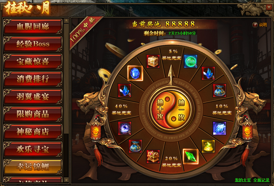 4.豪华奖池,100%中奖,更可称为传世锦鲤,领走奖池元宝!