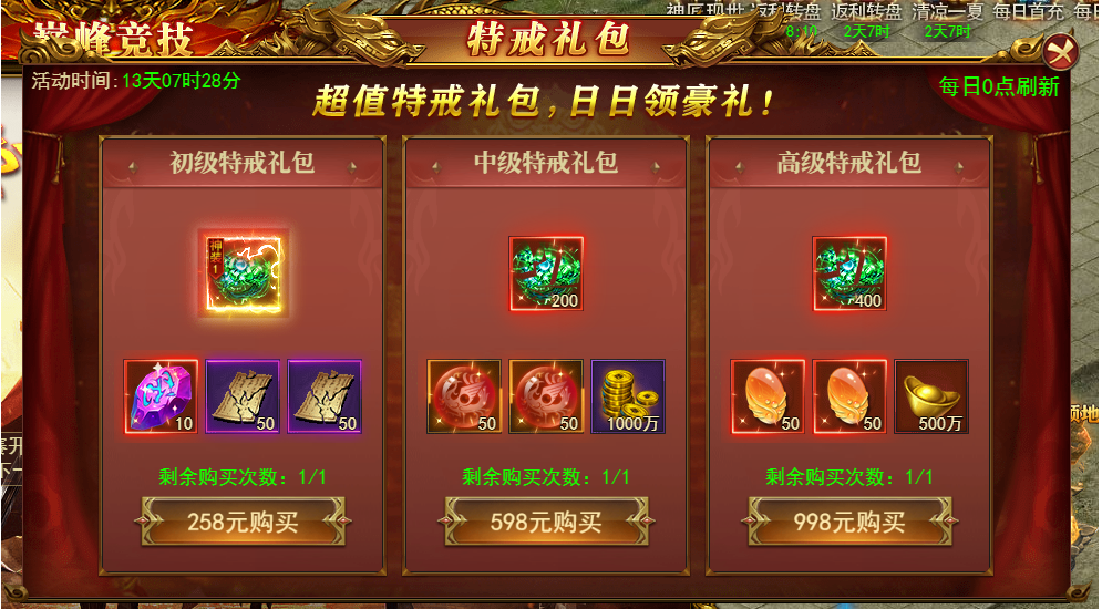 10、特戒礼包:巅峰竞技开启后,可直购购买幸运特戒礼包。