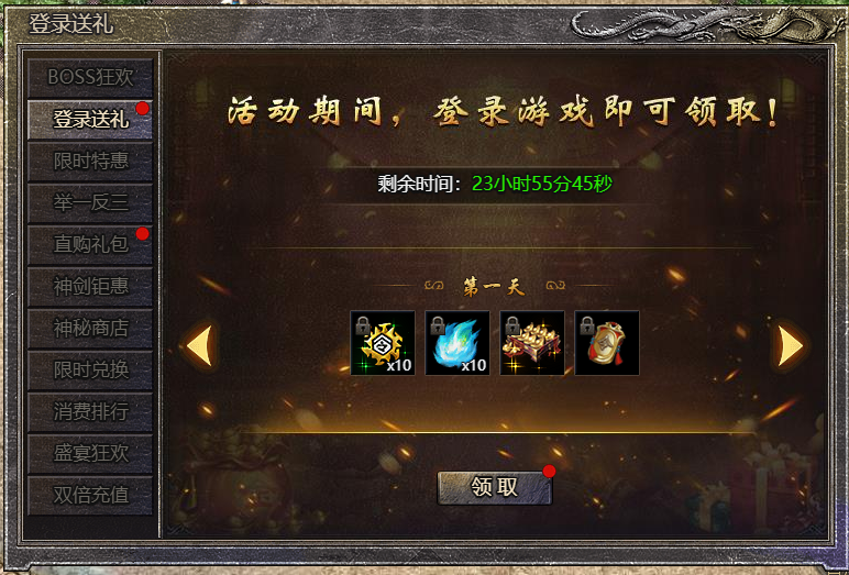 2.注意:当天未登录,则无法领取;