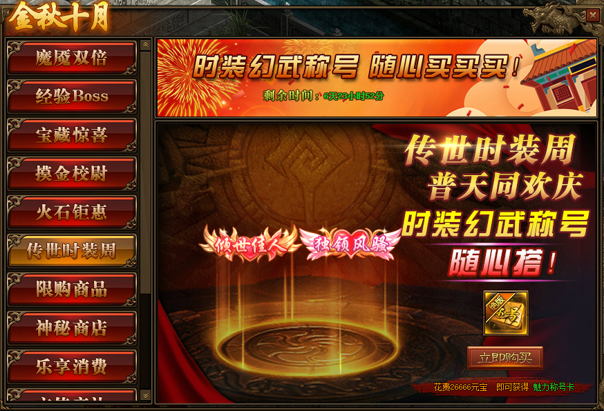 1.活动期间,玩家可在活动面板购买限购商品;(可翻页)