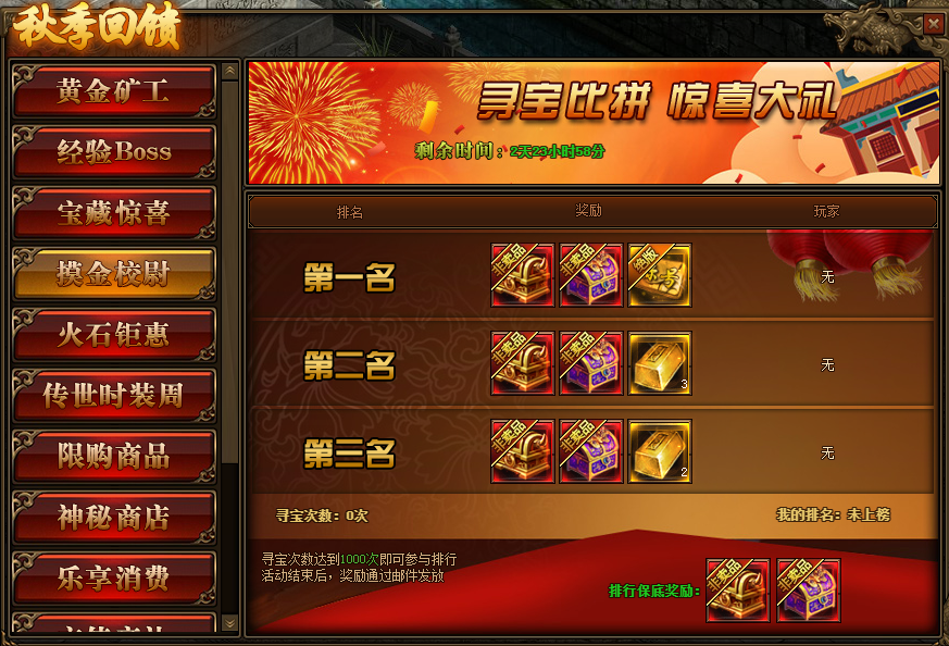 1.活动期间,玩家寻宝次数达到1000次即可参与到摸金校尉排行榜中