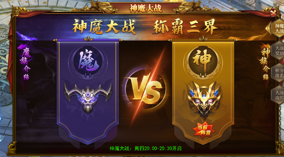 上古神魔再不断冲突后终于迎来一场旷世大战,阵营的勇士可以在战场开放时候加入战场,赢得荣耀