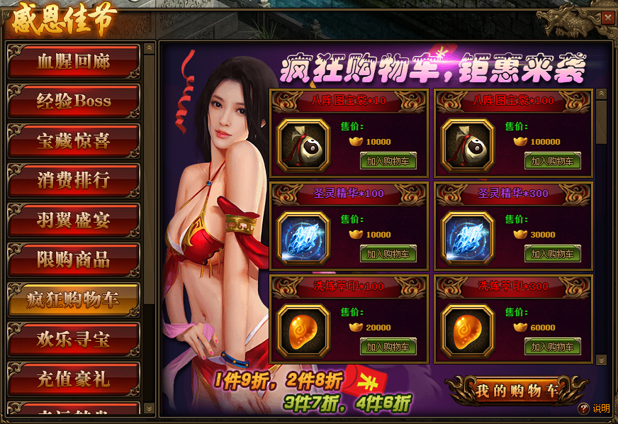 1.活动期间,玩家可在将碧落星空、龙纹福袋等物品放入我的购物车;