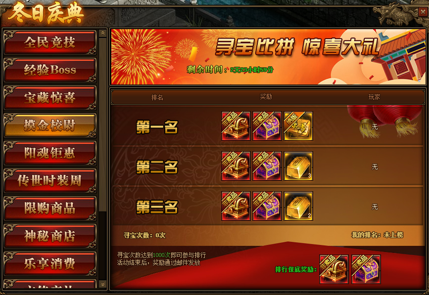 1.活动期间,玩家寻宝次数达到1000次即可参与到摸金校尉排行榜中