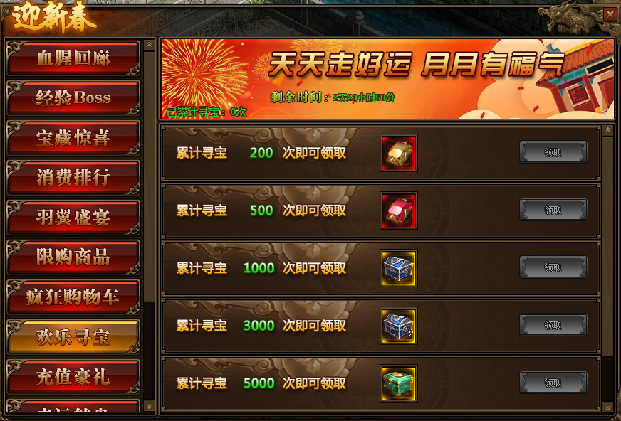 1.活动期间,玩家累积寻宝次数满足要求,可以领取高级天魂石等相应奖励;