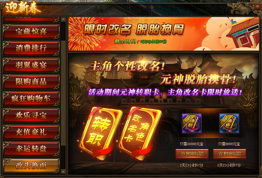 2.活动期间,玩家可在活动面板中购买主角改名卡,让你的名字个性十足;