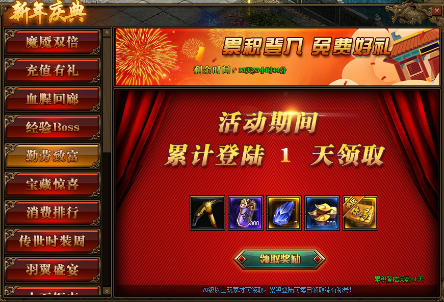 1.活动期间,累计登录1天即可领取免费礼包