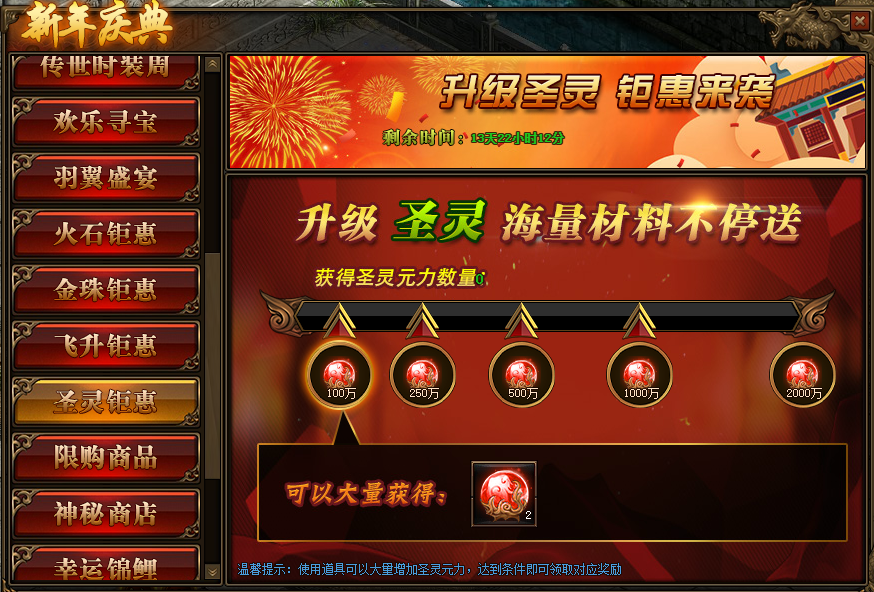 活动期间,玩家获得火石碎片数量,达到条件可领取对应圣灵元力奖励。