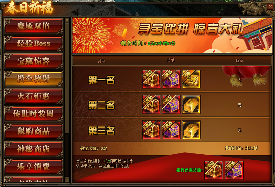1.活动期间,玩家寻宝次数达到1000次即可参与到摸金校尉排行榜中