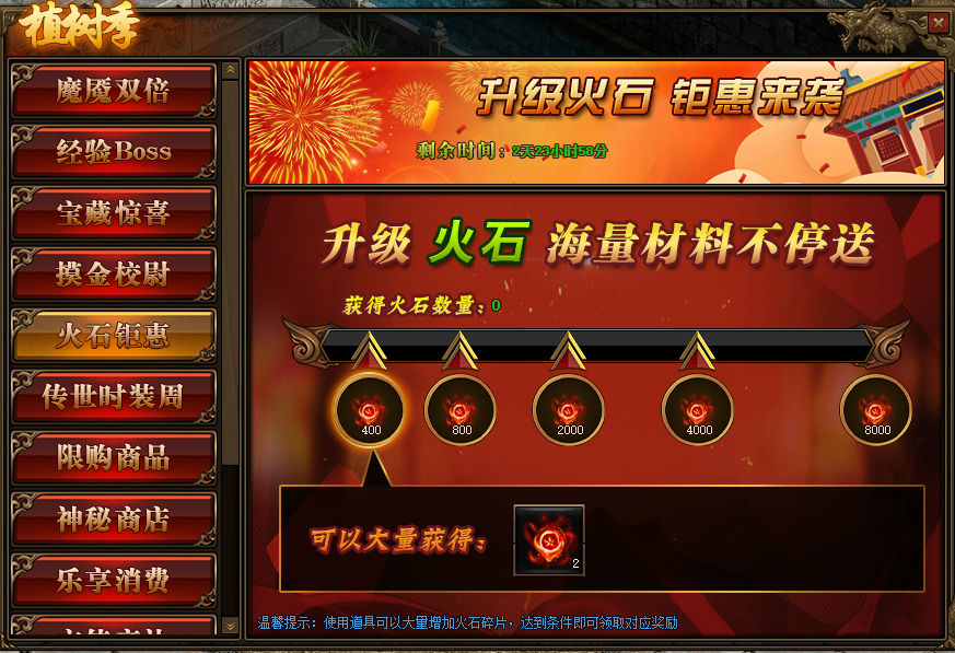 1.活动期间,玩家获得火石碎片数量,达到条件可领取对应火石碎片奖励。