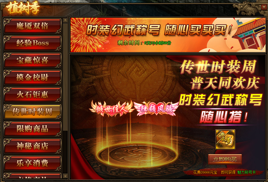 1.活动期间,玩家可在活动面板购买限购商品;(可翻页)