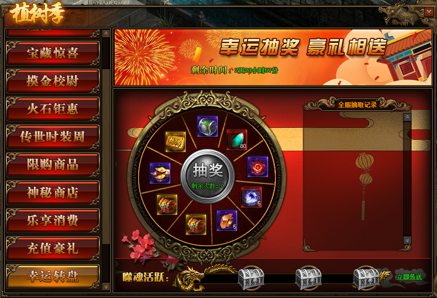 2.活动期间内,根据抽奖次数可用于抽取转盘内奖励道具,奖励道具不会重复获得;