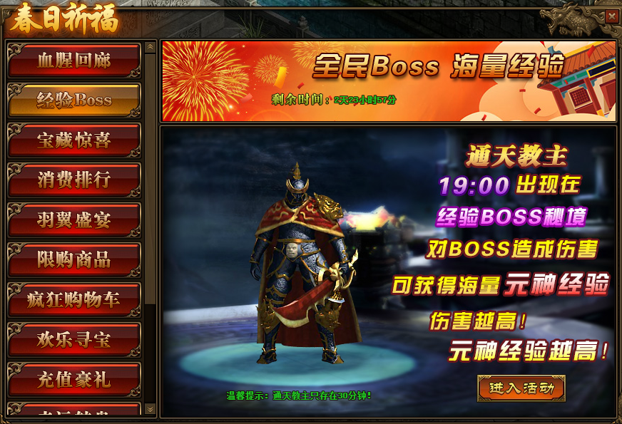 2.活动中,玩家对BOSS造成的伤害,将在活动结束后转换成元神经验并发放;