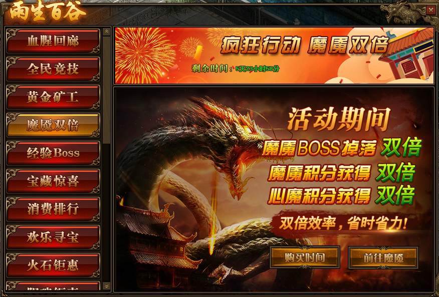 1.活动期间,玩家进入魔魇地图击杀魔魇BOSS可获得双倍掉落,获得魔魇、心魔积分翻倍