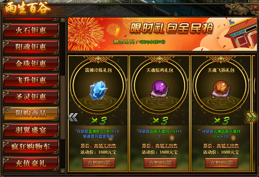 1.活动期间,玩家可在活动面板购买限购商品;(可翻页)