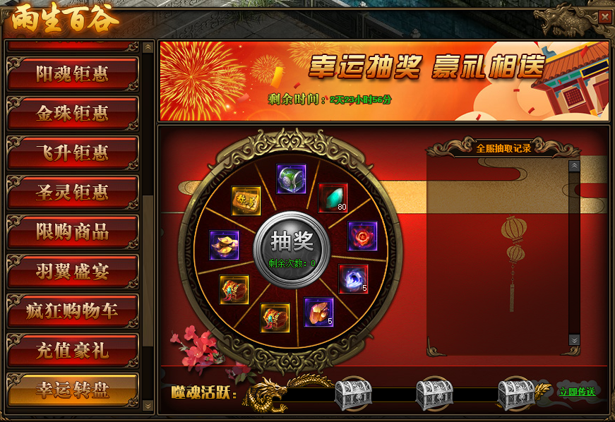 2.活动期间内,根据抽奖次数可用于抽取转盘内奖励道具,奖励道具不会重复获得;