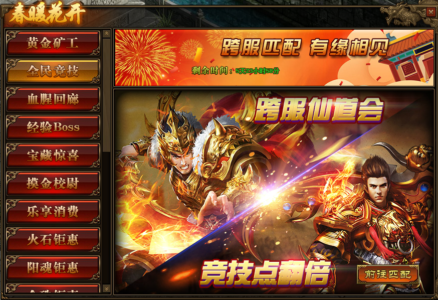 1.活动期间,玩家参与跨服仙道会3V3或5V5匹配,获得“竞技点”翻倍;