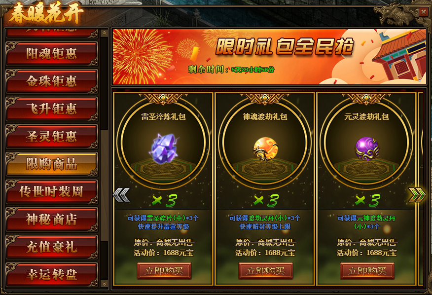 3.不同礼包,买买买,请查看游戏内更多新礼包内容!