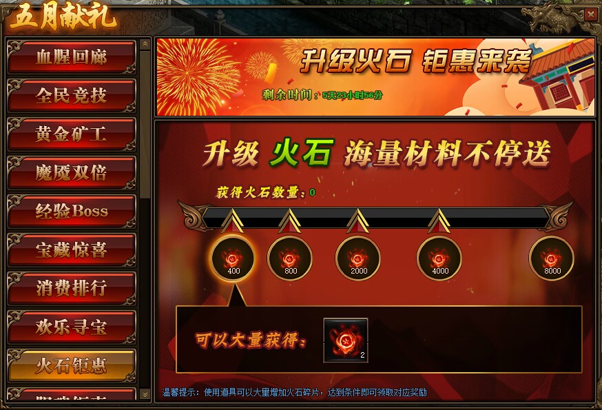1.活动期间,玩家获得火石碎片数量,达到条件可领取对应火石碎片奖励。