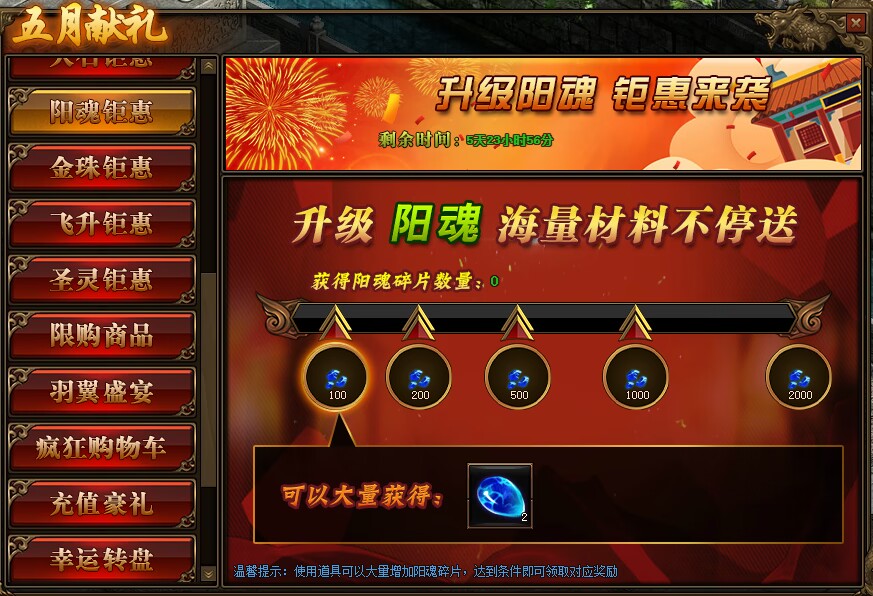 1.活动期间,玩家获得阳魂碎片数量,达到条件可领取对应阳魂碎片奖励。