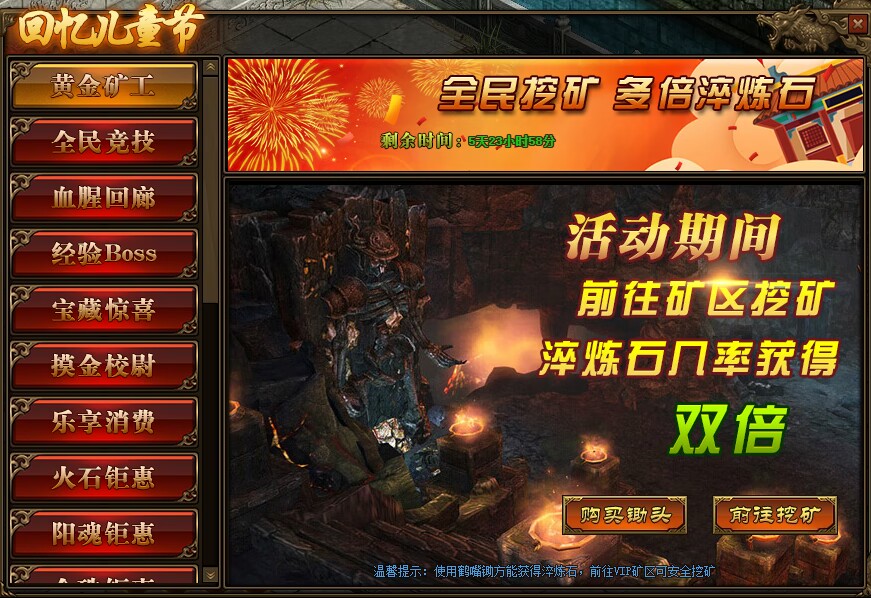 2.注意:必须使用“鹤嘴锄”才可获得“淬炼石”,在VIP矿区可安全挖矿;