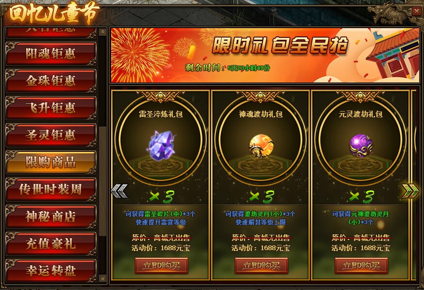 1.活动期间,玩家可在活动面板购买限购商品;(可翻页)