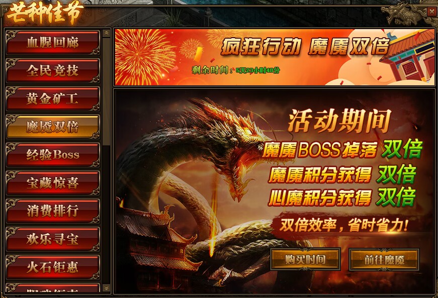 1.活动期间,玩家进入魔魇地图击杀魔魇BOSS可获得双倍掉落,获得魔魇、心魔积分翻倍