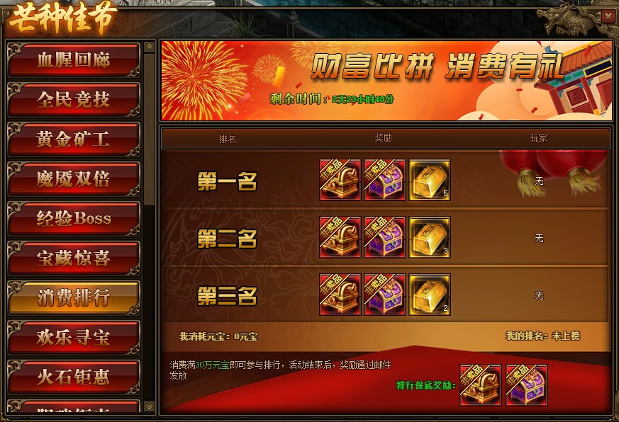 第三名:名列前茅自选宝箱,传世灵器随机宝箱*1,金条(300w)*2;