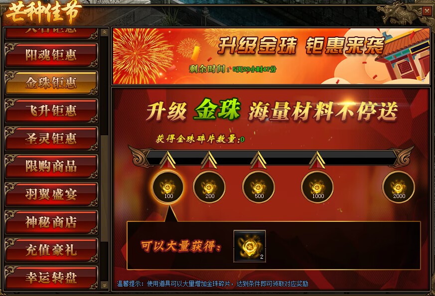 1.活动期间,玩家获得金珠碎片数量,达到条件可领取对应金珠碎片奖励。