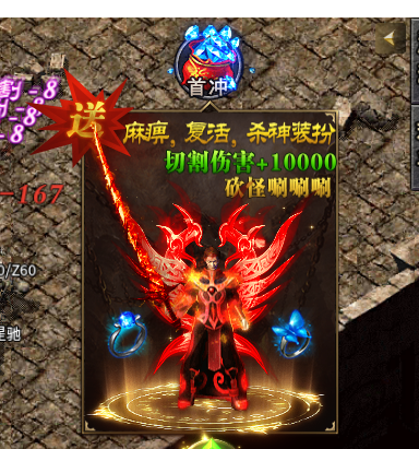 已经领取老版首冲10元、50元档的玩家,更新后首冲豪礼自动激活(如玩家多领取的传奇·复活、传奇·麻痹、嗜血杀神斩、嗜血杀神衣服可自行销毁)。