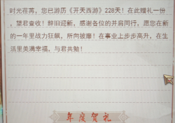 亲爱的大圣,感觉您一年以来的陪伴,游戏为您准备了年度贺礼活动(需活动开启前已创建角色且区服开服时间大于等于15天),2月15日上线可领取神秘大礼!