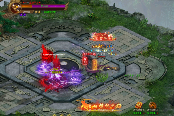 迷宫内可使用迷宫随机石前往不同房间,每次随机可在房间停留10分钟,时间结束后传送回初始房间;