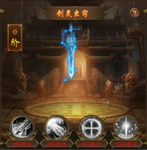 消耗剑灵碎片(可通过剑神秘境获取)可升阶剑灵,提升剑灵至指定阶级可激活特殊效果: