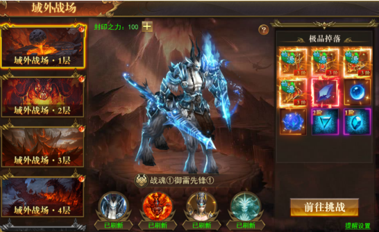 每日11:30魔神降临域外,每层BOSS独立计算奖励,玩家可选其中一层参与(每日仅可选一层进入,前往挑战后无法更改);