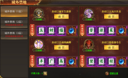 跨服副本地图,不同层数所需神之力和荒古装备等阶不同,层数越高,奖励越好;