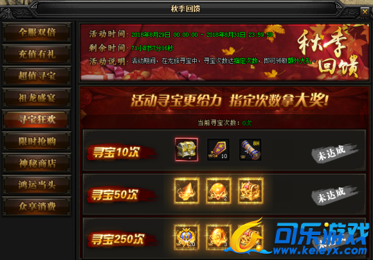 活动说明:活动期间,在龙族寻宝中,寻宝次数达指定次数,即可领取额外大礼。