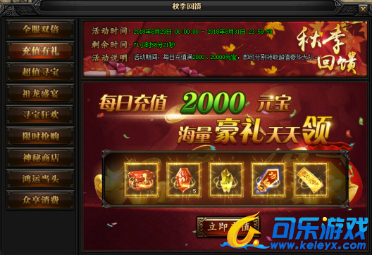 活动说明:活动期间,每日充值满2000、20000元宝!还能领取超值豪华大礼