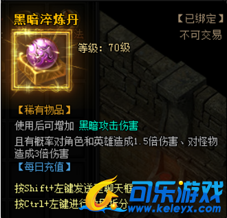 淬炼所需材料“黑暗淬炼丹”可在“每日充值”活动中获取