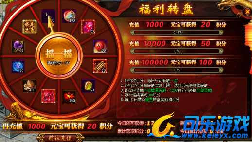 1. 玩家每天累计充值达到条件,可获得转盘积分,