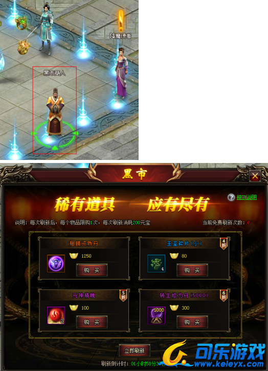 增加黑市商人,通过点击天威城【黑市商人】NPC打开购买界面