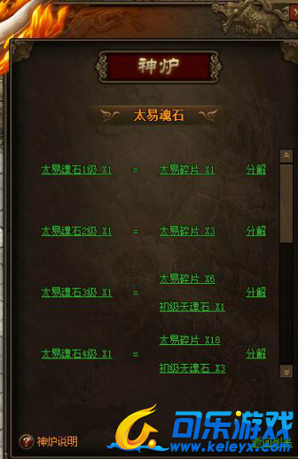 不同等级的8种天魂石可在神炉NPC处进行分解操作