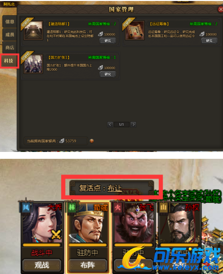 3、群雄科技-设置陪都,可选择己方归属城池设置陪都,陪都功能和都城一样;
