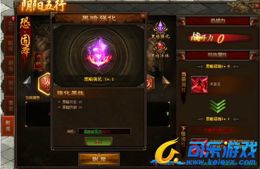 可在【五行-附魔】内提升黑暗强化和黑暗淬体
