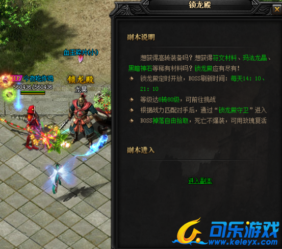 当角色达到6转80级,即可前往神龙岛,在“锁龙殿”开启时间内通过位于神龙岛安全区的npc“龙昊”(98,109)进入挑战