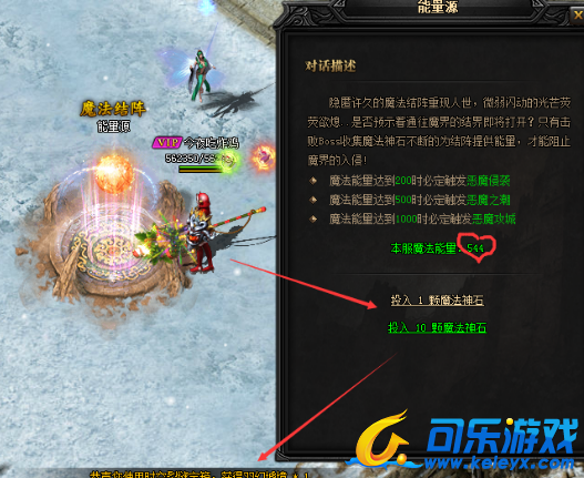 于盟重省“魔法结阵”(100,121)处,通过投放神石为“魔法结阵”注入能量