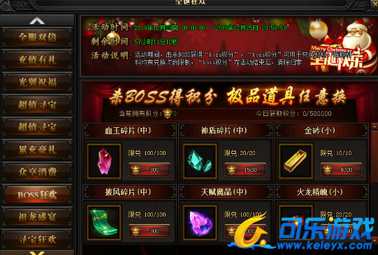 在特殊活动期间,将开放“BOSS狂欢”活动,活动期间,击杀BOSS可获得“BOSS积分”“BOSS积分”可在活动面板兑换材料,每种材料均有兑换次数限制