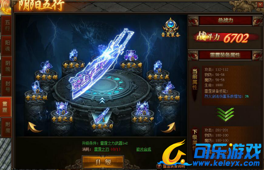 雷霆装备等级越高,对装备基础属性加成越大,技能效果更强